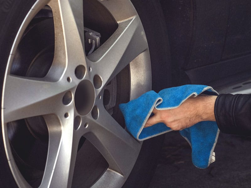 Wheels cleaned to remove brake dust and iron particles